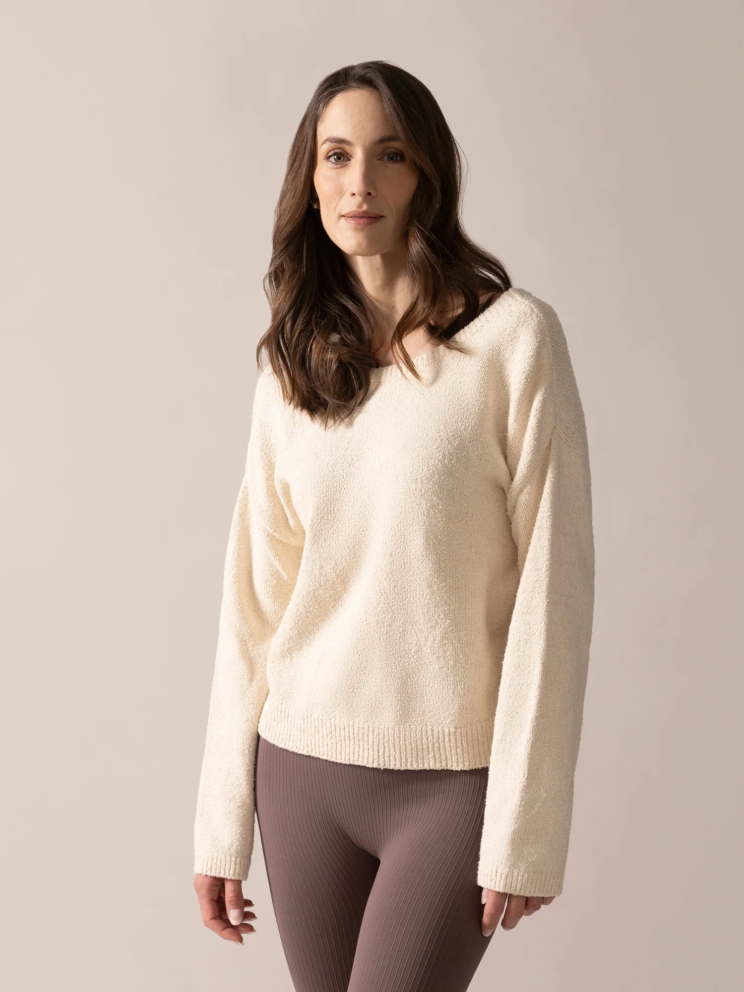 Bow-Back Bouclé Knit Sweater in Almond