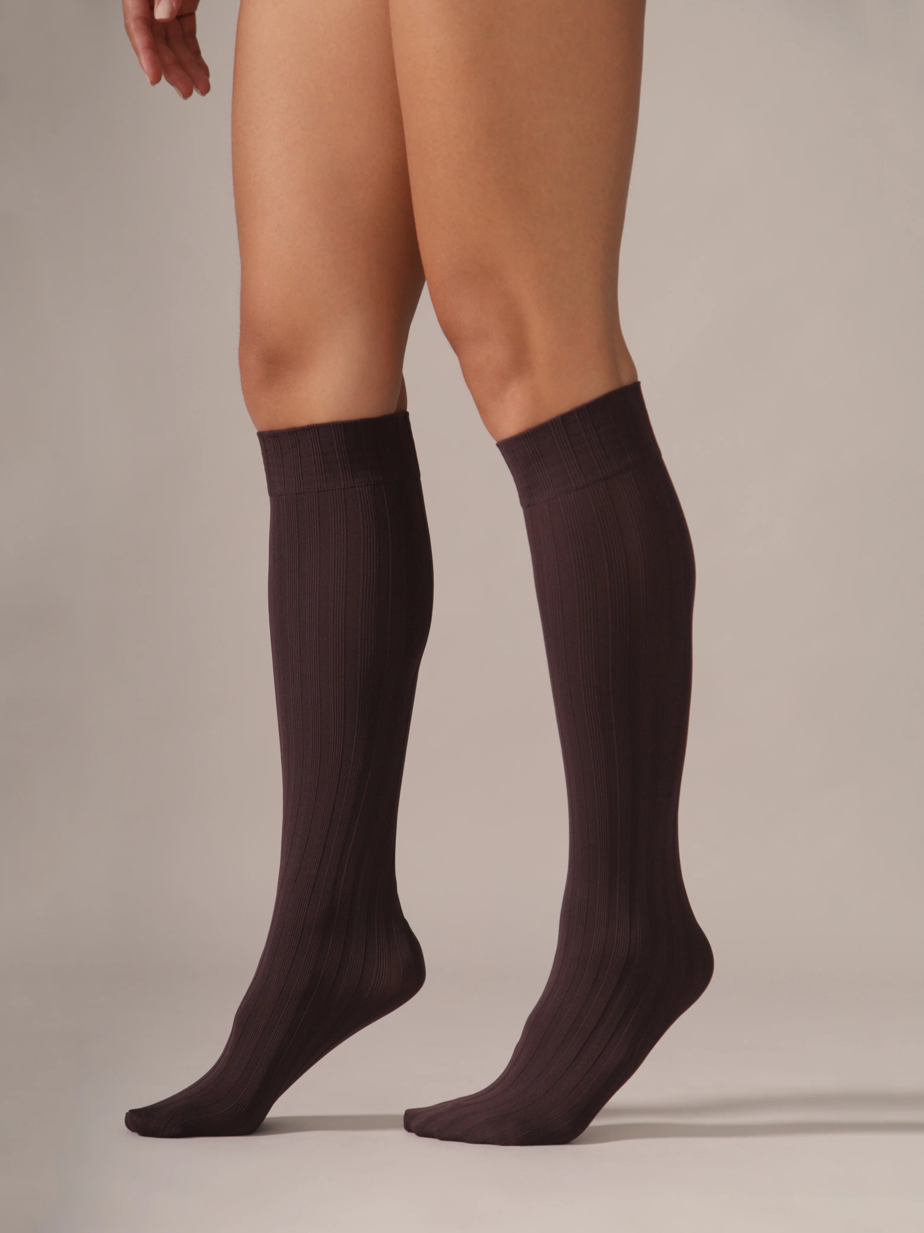 With a soft ribbed texture and deep plum color, our Wide Rib Opaque Socks are made to layer beautifully with your patterned tights or wear on bare legs, adding comfort and confidence to every step.